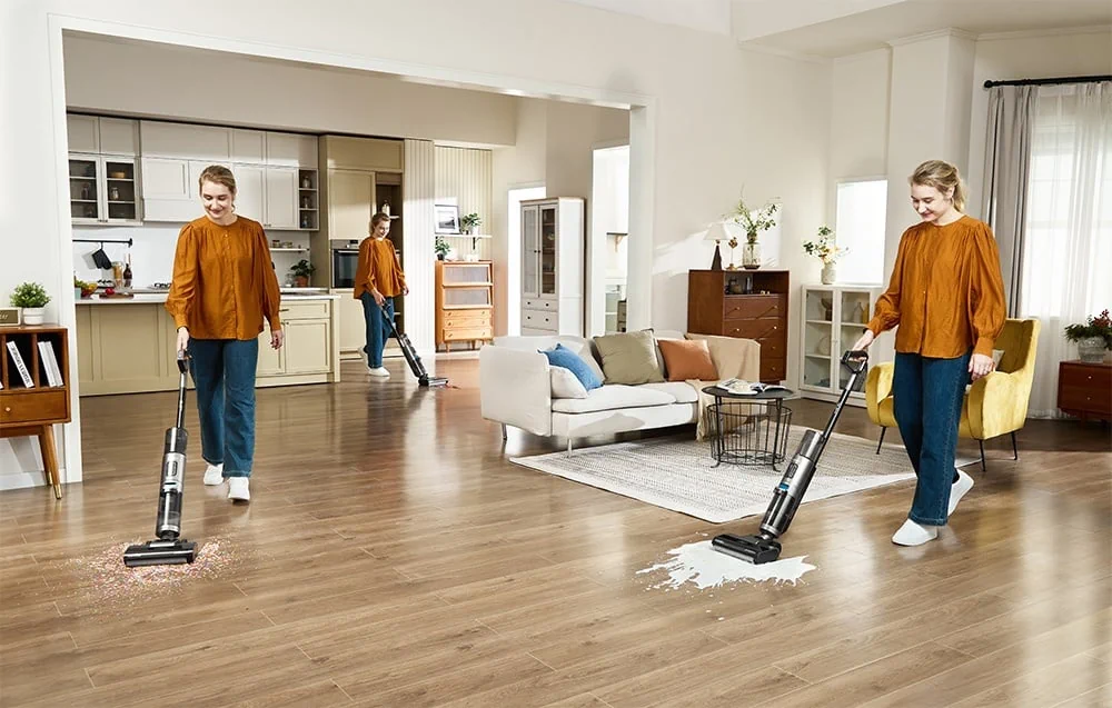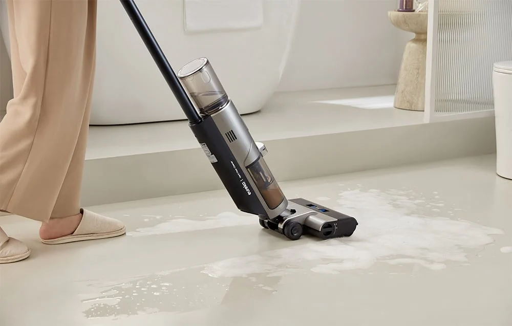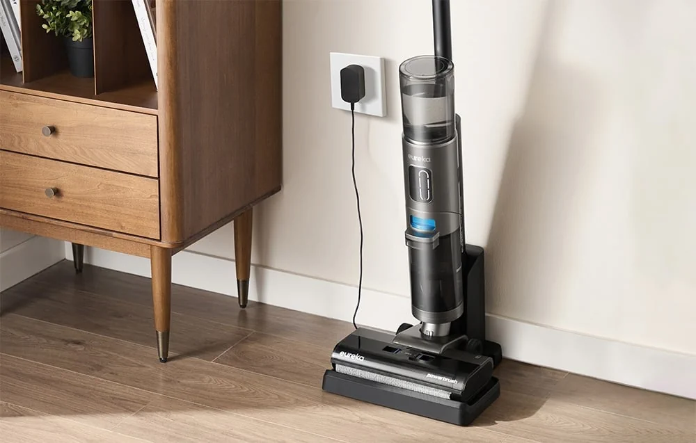 Eureka RapidWash GX5 Pro впечатлява с елегантния си, минималистичен дизайн. Прозрачният резервоар за чиста вода ви позволява лесно да следите нивото на водата, а дискретната цветова гама се вписва перфектно във всеки интериор. Благодарение на докинг станцията за зареждане и самопочистване, прахосмукачката е винаги готова за действие – без да се налага допълнителна поддръжка.